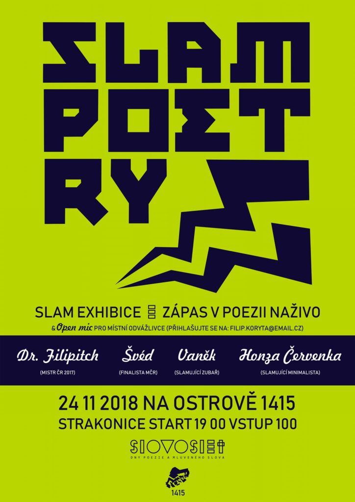 Zápas ve slamu Na Ostrově 1415 – v rámci Slovoslet 2018. O vaši přízeň se utkají Dr.Filipitch, Švéd, Vaněk, Martin Červenka a Martin Gregora